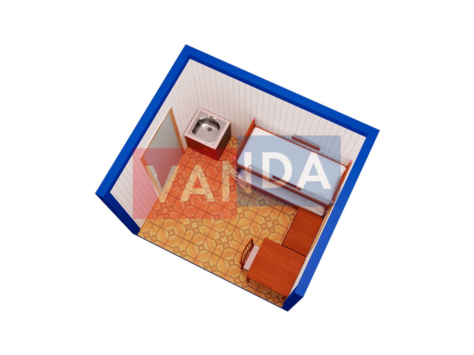 Блок контейнер металлический 3,0 x 2,4 - Вагонка ПВХ изготавливается из несущего каркаса (верхняя и нижняя обвязка): швеллер 100х50х3 мм., угловые стойки: сложно - гнутый угол 90х90х3 мм., крыша блок-контейнера: металл сварной 0,9-1 мм., качественная наружная отделка: оцинкованный профлист, внутренняя отделка стен: Вагонка ПВХ, внутренняя отделка потолка: Вагонка ПВХ, вспомогательный деревянный каркас (стены): брусок 40х75 мм., лаги пола: обрезная доска 40х100 мм., лаги потолка: обрезная доска 40х100 мм., выполнено утепление: Минеральная вата «ISOVER» – 50 мм. и пароизоляция: плёнка техническая, черновой пол состоит из: обрезная доска 20 мм. (2 сорт), чистовой пол покрыт: ДСП строительное 16 мм., отделка пола выполнена из качественных материалов. Контейнер комплектуется окнами: деревянное, двойное остекление 800х1000, входной дверью: ДГ 21-8 обшита снаружи оцинкованным листом, врезной замок и внутренними дверями: ДГ 21-8 (при наличии перегородки). Если в БК присутствуют перегородки, то для них используется: брусок 40х50 мм.
