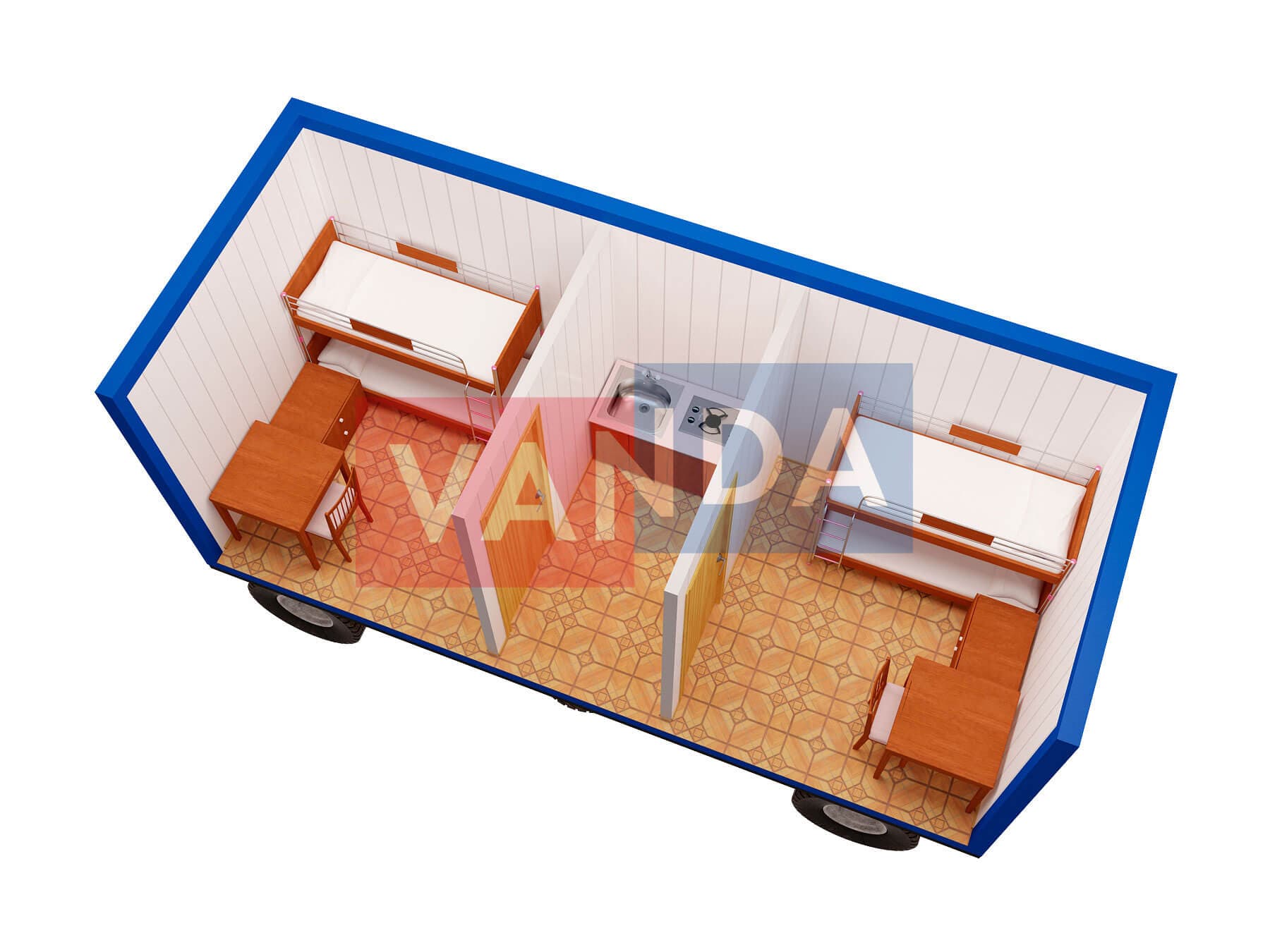 Металлическая бытовка без тамбура 5,85 x 2,4 - Оргалит ДВП