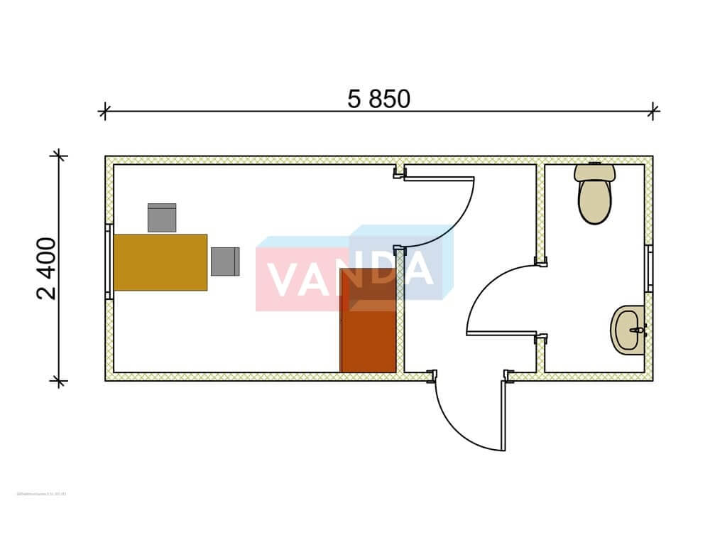 Блок контейнер металлический с тамбуром 5,85х2,4 - Оргалит ДВП