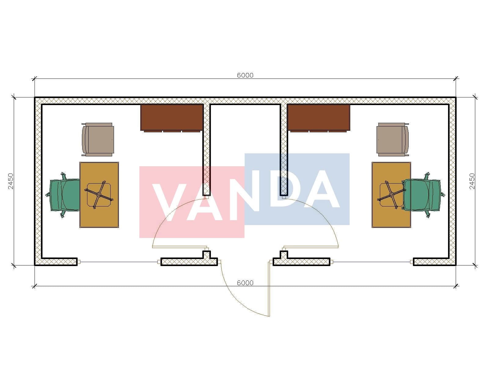 Проект модульный штаб строительства 6.0x9,6 Панели ПВХ