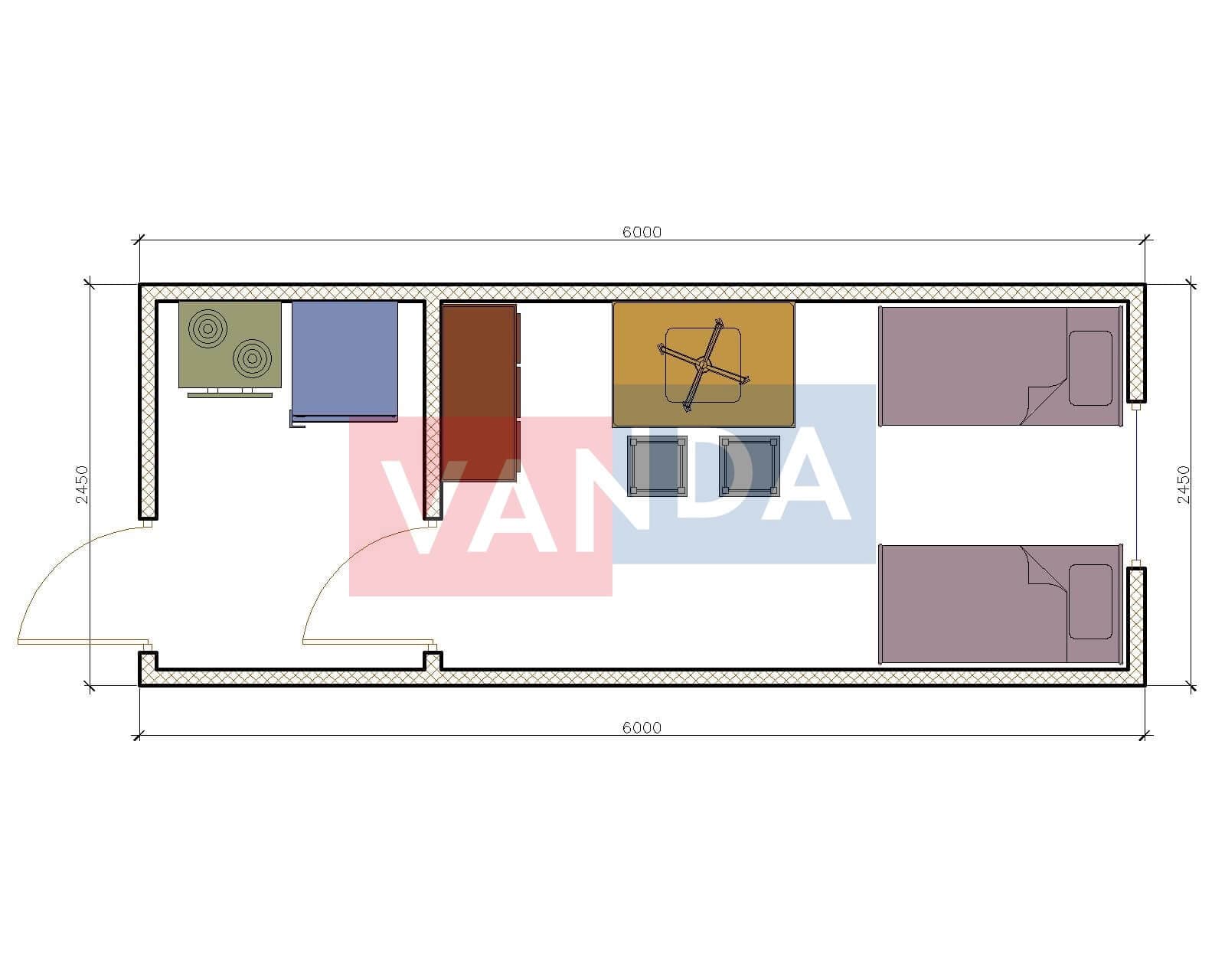 Бытовка металлическая двухкомнатная 6х2,45