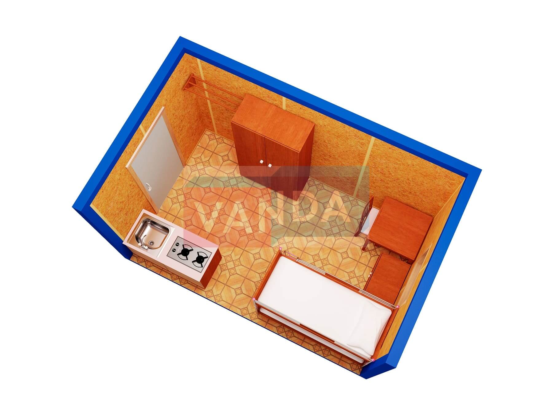 Металлическая бытовка распашонка 5,85 x 2,4 - Оргалит ДВП