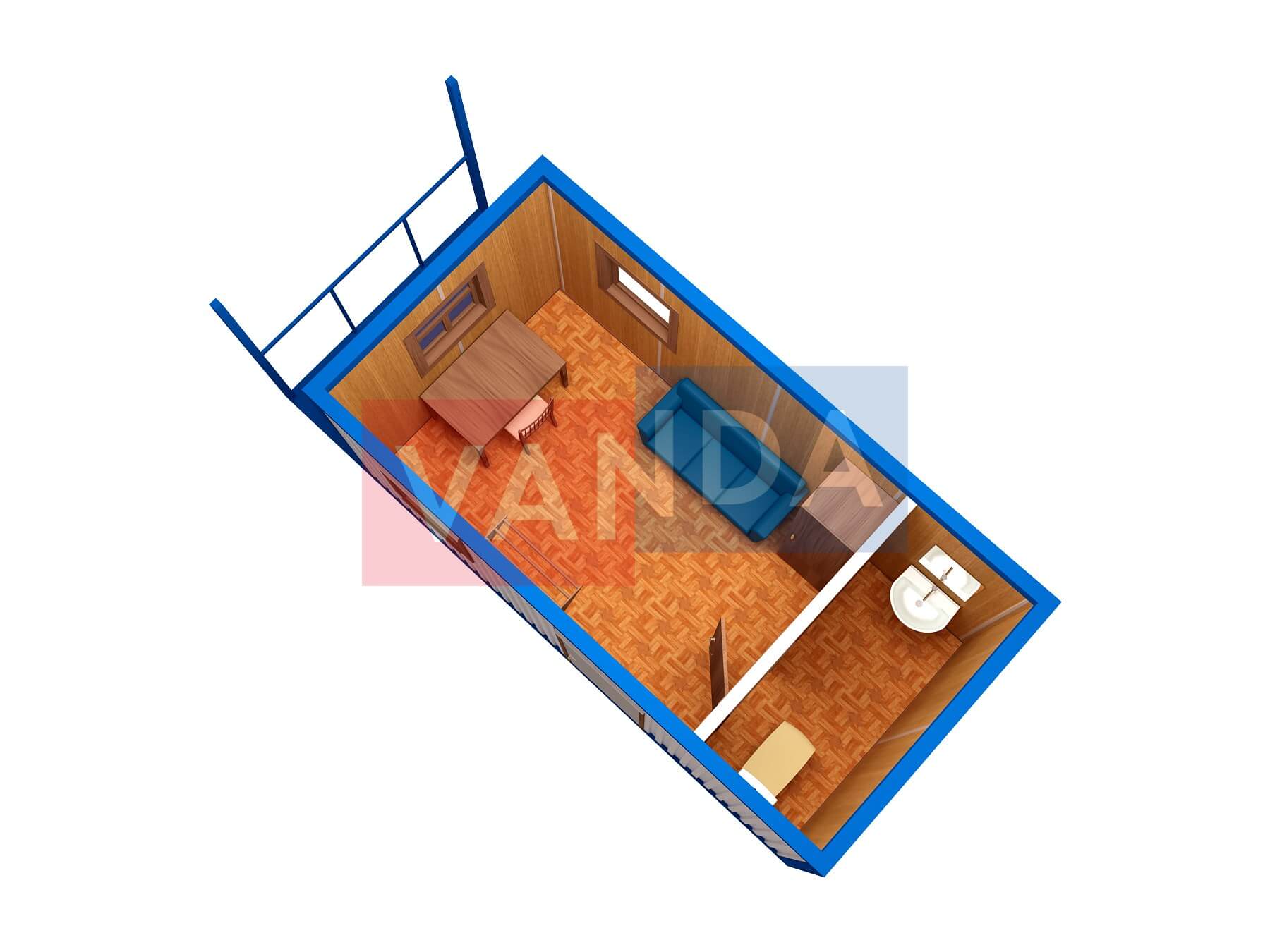 Металлическая бытовка с кухней в тамбуре 5,85 x 2,4 - Оргалит ДВП